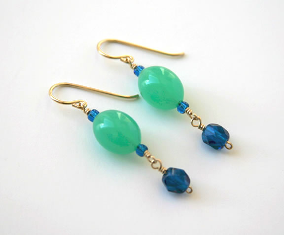 Vintage Lucite, Czech glass and 14k gold-filled wire. 14k gold-filled earwires.