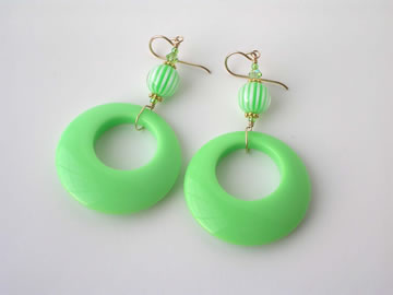 Vintage Lucite hoops and striped bead with Swarovski crystal on 14K gold-filled wire.